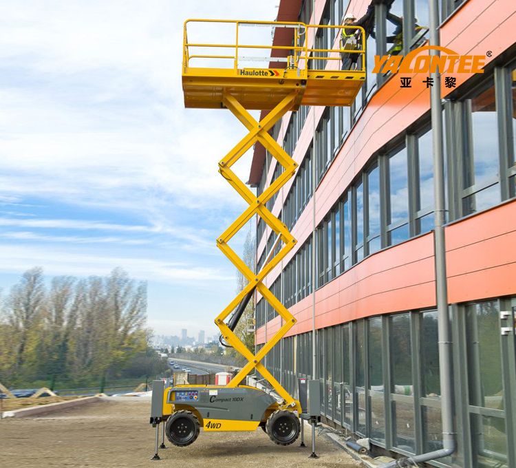 法國(guó)Haulotte公司生產(chǎn)的Compact10DX型越野剪刀式登高平臺(tái)作業(yè)高度為10米,承載能力為565公斤,采用大功率柴油發(fā)動(dòng)機(jī),配置越野實(shí)心輪胎,全比例控制技術(shù),而且整個(gè)機(jī)器美觀大方,非常適合在類(lèi)似建筑工地上的使用環(huán)境。