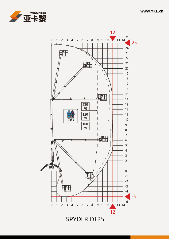 意大利思藍CELA公司生產(chǎn)的DT CRAWLER 25型是一款流行的,結(jié)構(gòu)緊湊,外觀精美,堅固耐用的蜘蛛車,所有的管線內(nèi)置于臂架,采用Can-bus總線的控制系統(tǒng),以及雙安全傳感器保護系統(tǒng)后,整個機器采用雙伸縮曲臂式設計,在水平延伸和跨越高度方面有無可比擬的優(yōu)勢,是一款在室內(nèi)狹小的地方使用的蜘蛛車,目前DT CRAWLER 25在商業(yè)中心,各種場館,高級辦公樓和機場、火車站等場合有廣泛的使用記錄,也是目前在國內(nèi)銷售比較多的蜘蛛車。